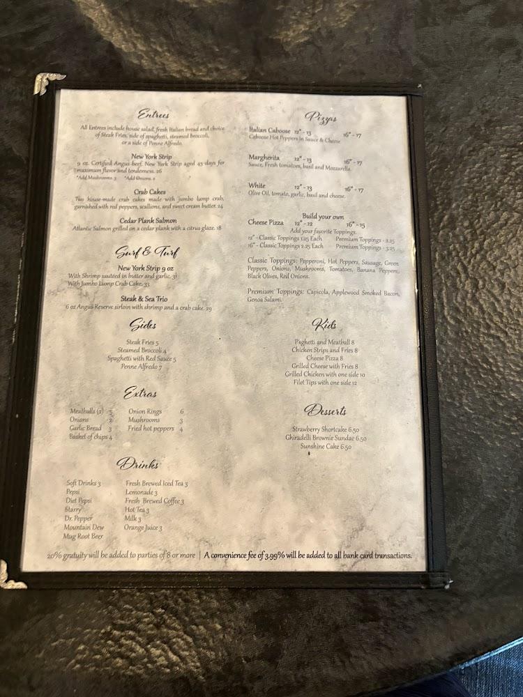 The Caboose features a diverse menu that balances signature Italian dishes and classic American comfort foods. Diners can choose from pizzas, pastas, and hearty entrees – all made with fresh ingredients. The casual atmosphere allows for shared plates, perfect for families and friends.